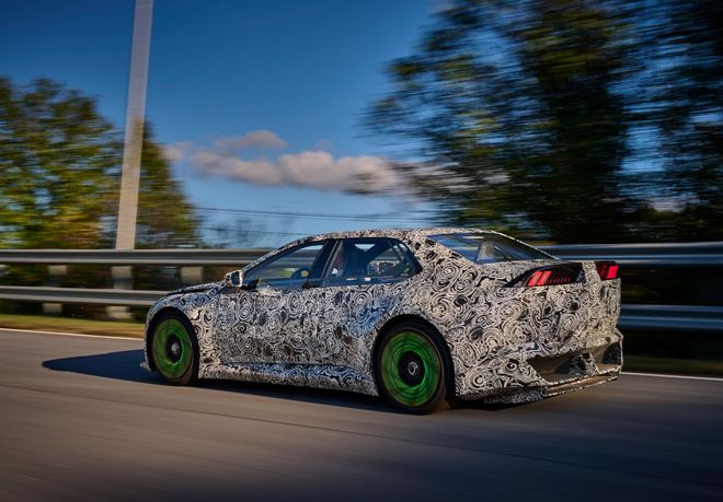至于车尾,刚才说这款概念车的造型有些美式肌肉车的感觉,看到尾灯和后包围会感觉更明显。首先是两侧趋于矩形设计的尾灯组,既能够与前大灯形成呼应,又能够提升车尾视觉重心,因为它被设计在传统后备厢扰流板的位置。而造型夸张的后包围和车尾扩散器也再度表明这款车的性能不一般,但当你知道这是电动版M3之后,对于这套空气动力学套件是不是就没那么向往了呢?