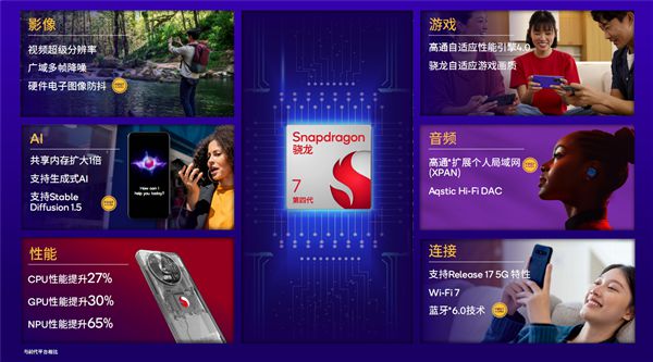全新的第四代骁龙7可为用户带来丰富、出色的多媒体体验,多个IP模块协同工作,加上台积电4nm工艺,整体能效出色。