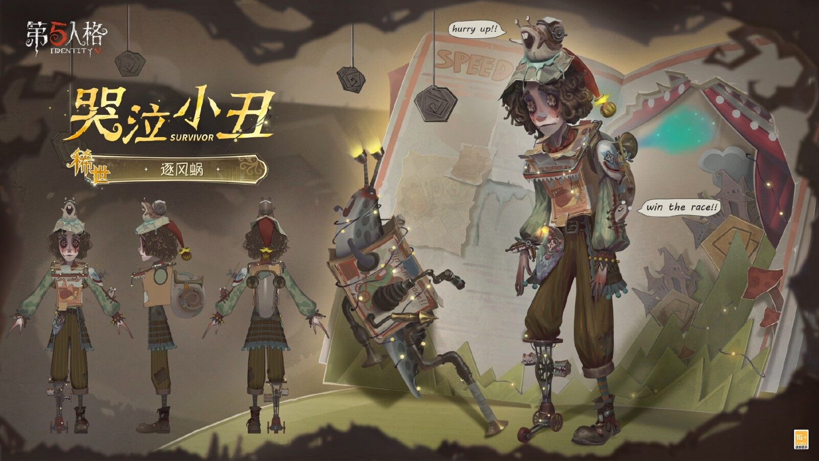 他不停奔跑着,穿过森的低语,越过风的背脊,直到抵达无人欢呼的胜利。网易首款1V4非对称竞技手游《第五人格》【稀世时装】哭泣小丑-逐风蜗将于7月30日正式上架商城,让我们一起感受童话世界的色彩与奇境之旅。