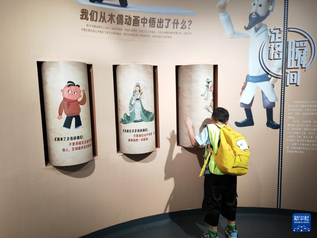 走进展厅,只见胶片样式的造型构造出一个沉浸式互动空间,通过追溯中国动画的时代传承,将一个世纪的动画发展历程呈现在观众面前。手摇式动画机、可转动木偶动画滚筒……现场多样化的展陈装置,呈现出手绘、折纸、水墨等艺术形式的魅力,让人们在“参与式”打卡中重温经典,领略多彩的中华文明。