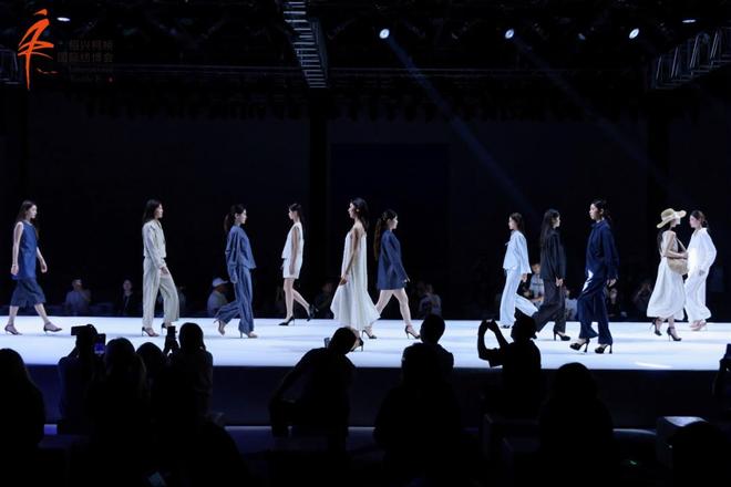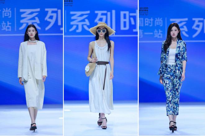纺博会首日,展馆内光影璀璨,以“秀展结合 创新发展”为主题的旗舰商铺联合发布活动成为全场焦点。随着 T 台灯光与音乐渐起,新明君纺织、舜佳纺织、邦圣纺织携54套精选成衣依次亮相。这些秀品均由企业现有面料改造升级,通过工艺创新、剪裁拼接与版型优化,让时尚生命力在舞台之上悠然绽放、自然生长。